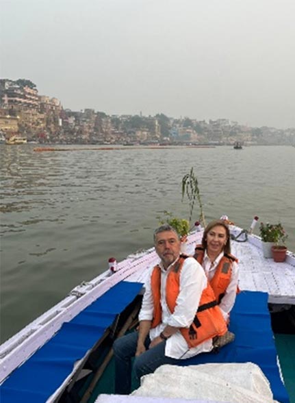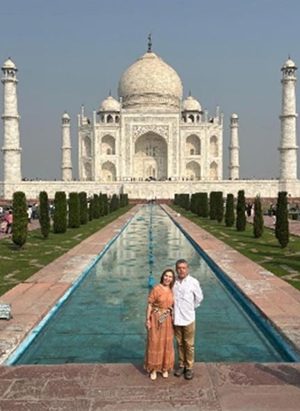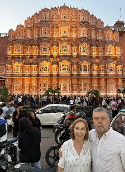 Jorge Torrentera nos contactó para que le organizaramos su gran viaje soñado a la India con su esposa Yolanda. También tenía el deseo de pasar unos días en un monasterio Budista; pués él vino solo y se quedó unos días en un monasterio de Ladakh para ver de cerca la vida de los Lamas y participar en cualquier tipo de trabajo que ofrecieran. Después llegó Yolanda y juntos hicieron, con su guía acompañante, el resto del viaje lleno de experiencias y vivencias. El recorrido fue Delhi, Amritsar, Khajuraho donde tuvieron la suerte de ver el tigre de Bengala en la reserva de Panna, Varanasi, Agra y Jaipur. Fue un viaje de 18 días en India con extension de 3 días a Dubai. Un viaje inolvidable!!